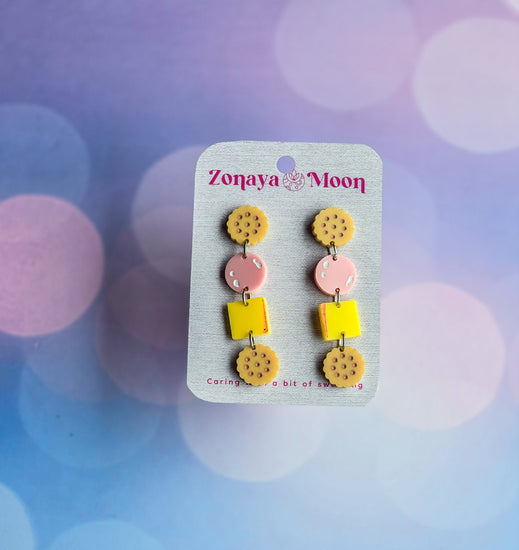 Liven up your lunch with these "Lunchables"-inspired earrings! These fun and quirky accessories will add a playful touch to any outfit. Perfect for anyone who doesn't take themselves too seriously, these earrings will surely make a statement. Show off your unique style with these tasty treats!